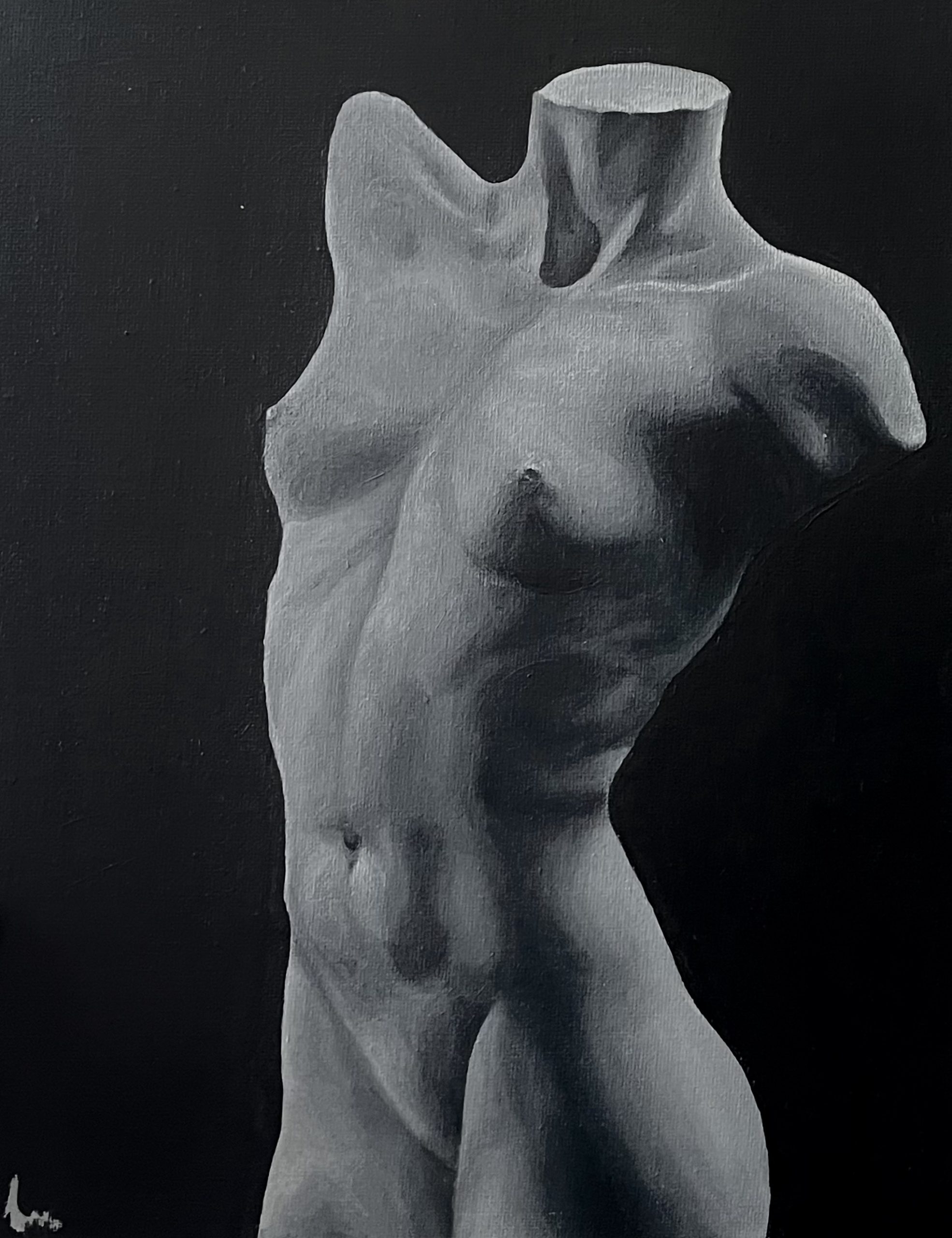 This acrylic painting shows the bust of a female body. I created it after many sketches and studies, as part of my interest in exploring the human form. With this work I aimed to understand anatomy more deeply, and I plan to continue painting bodies to develop my skills further.