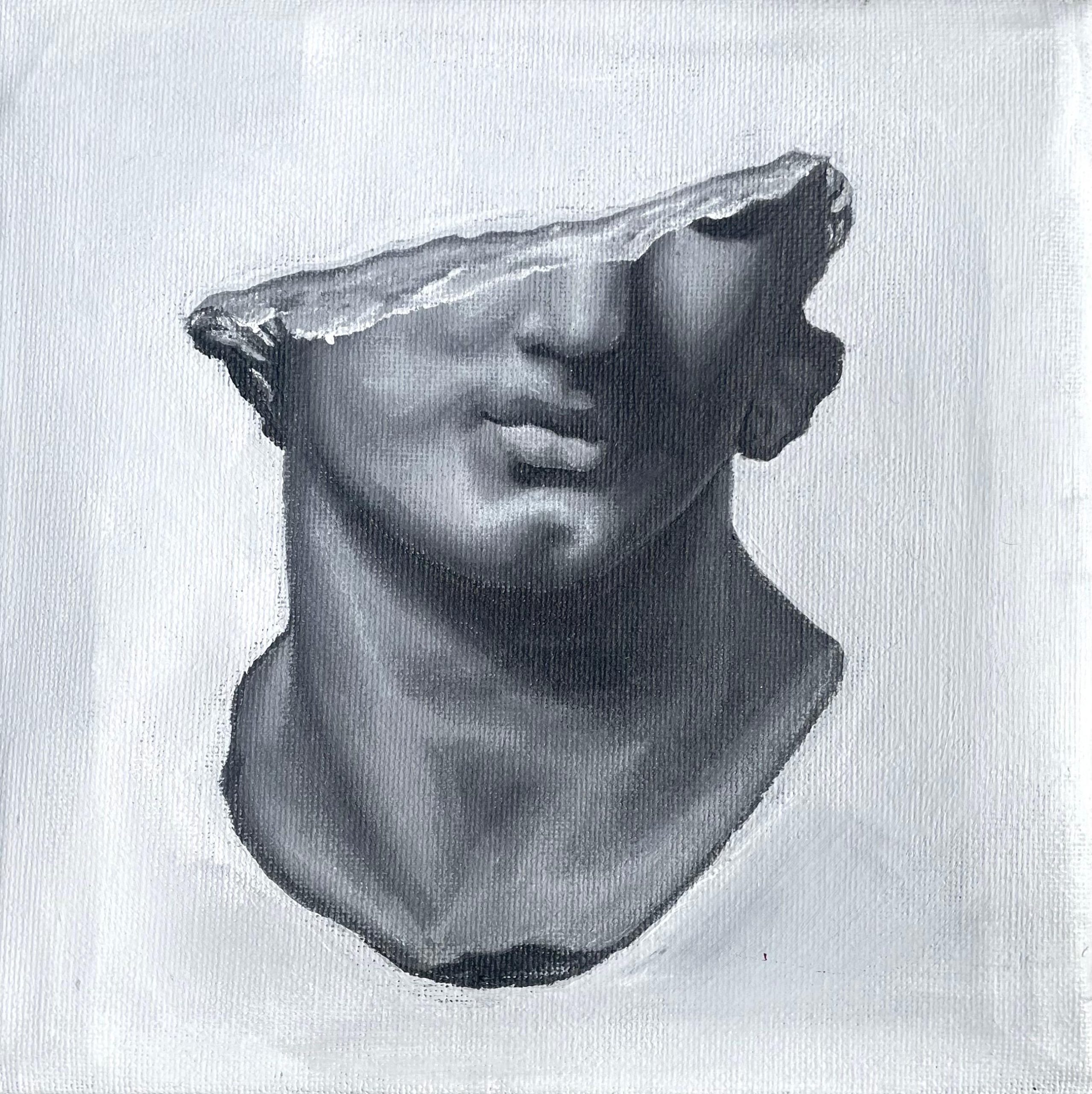 This acrylic painting portrays a famous classical bust with a half-broken face. It is my third acrylic work, created as a study of timeless beauty, fragility, and the play of light and shadow on damaged stone.